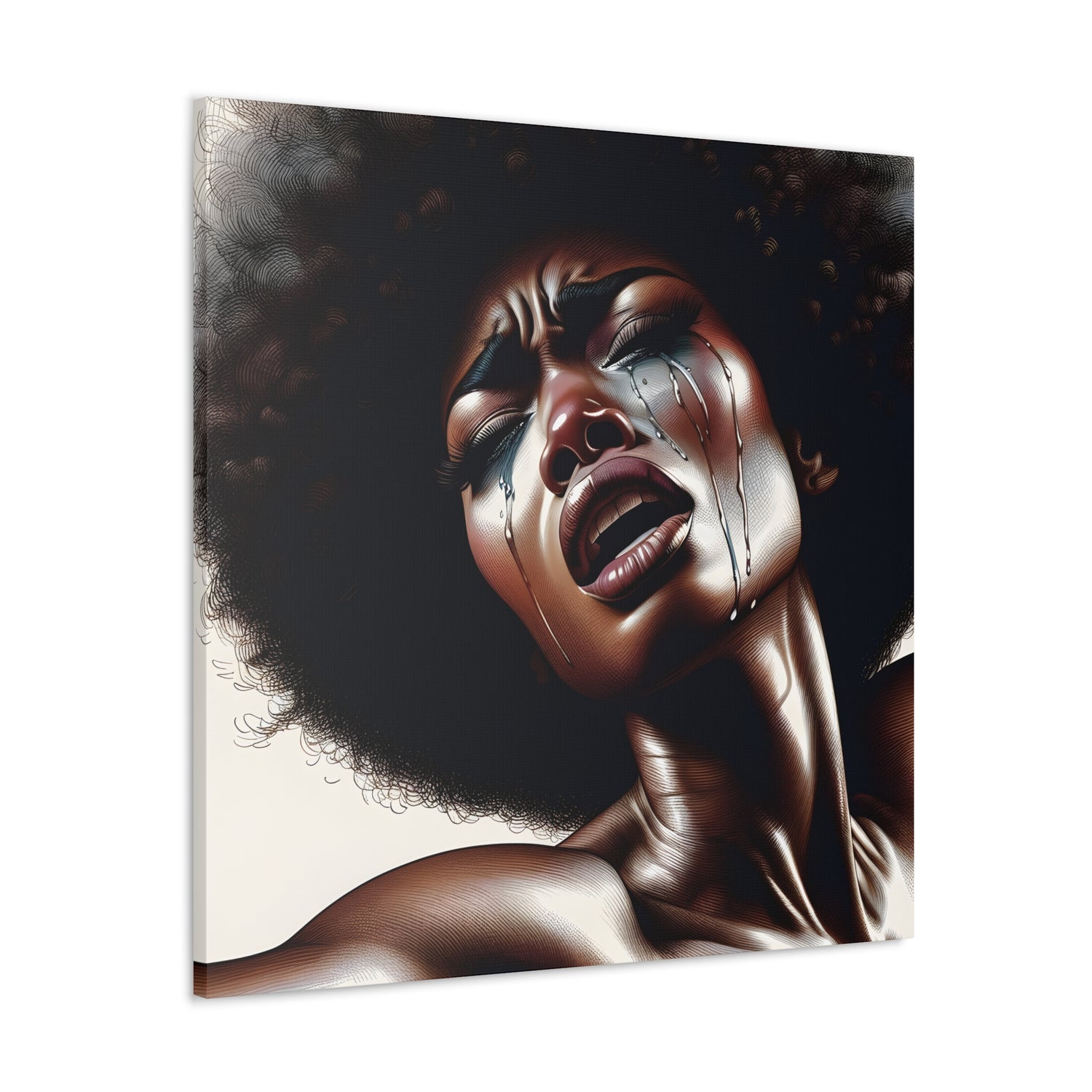 Elevate your space with this striking canvas. This unique piece, capturing the raw emotion and strength of a Black woman.