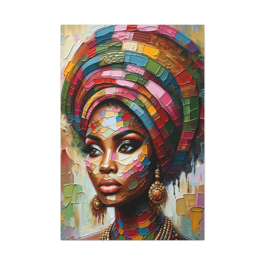 Mosaic Majesty: Vibrant African Woman Portrait Canvas Art for Bold Home Décor