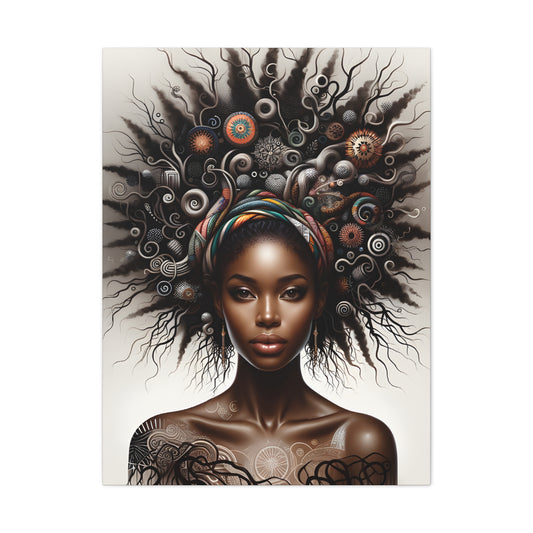 Serenity in Swirls: Elegant Afrocentric Female Portrait Canvas Art for Modern Home Décor